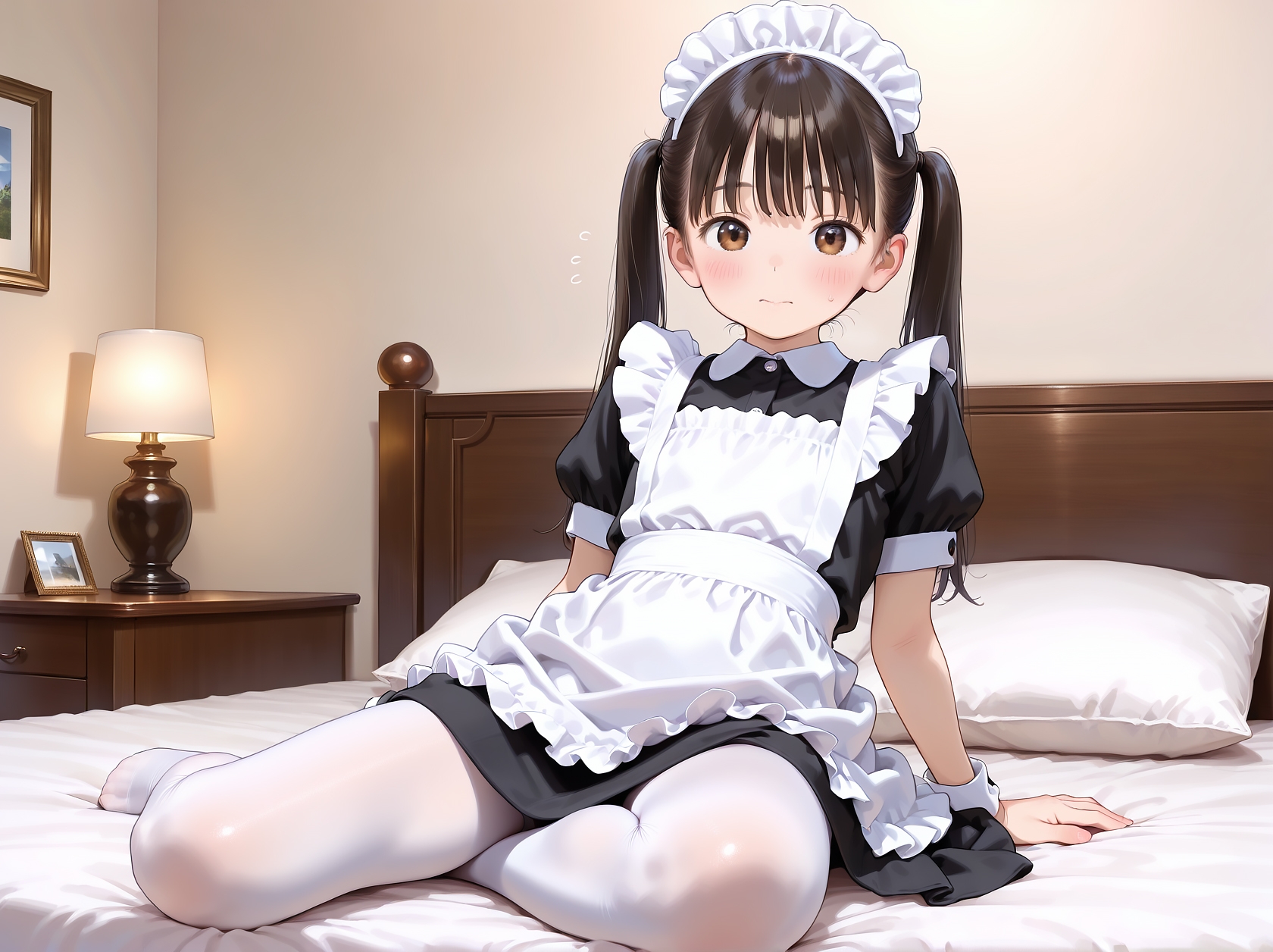 妹はメイド服に身を包み、兄のベッドにそっと近づきます。