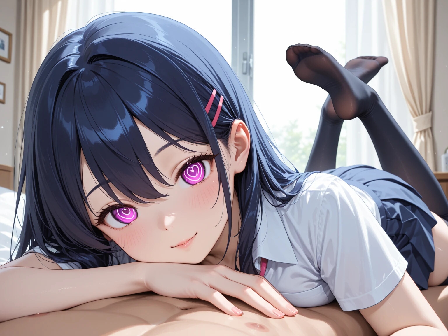 ベッドの上であらわになった制服姿の少女は、恥じらいも戸惑いもなく、むしろどこかうれしそうに腰を揺らしていた。