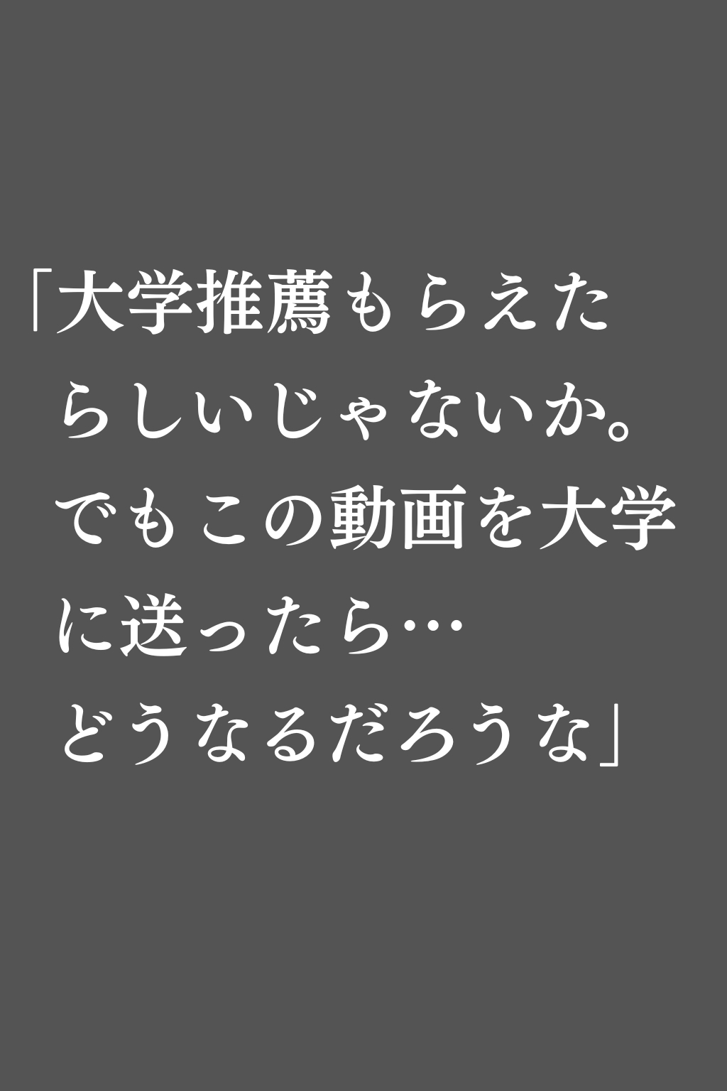 「大学推薦もらえたらしいじゃないか。でもこの動画を大学に送ったら…どうなるだろうな?」
