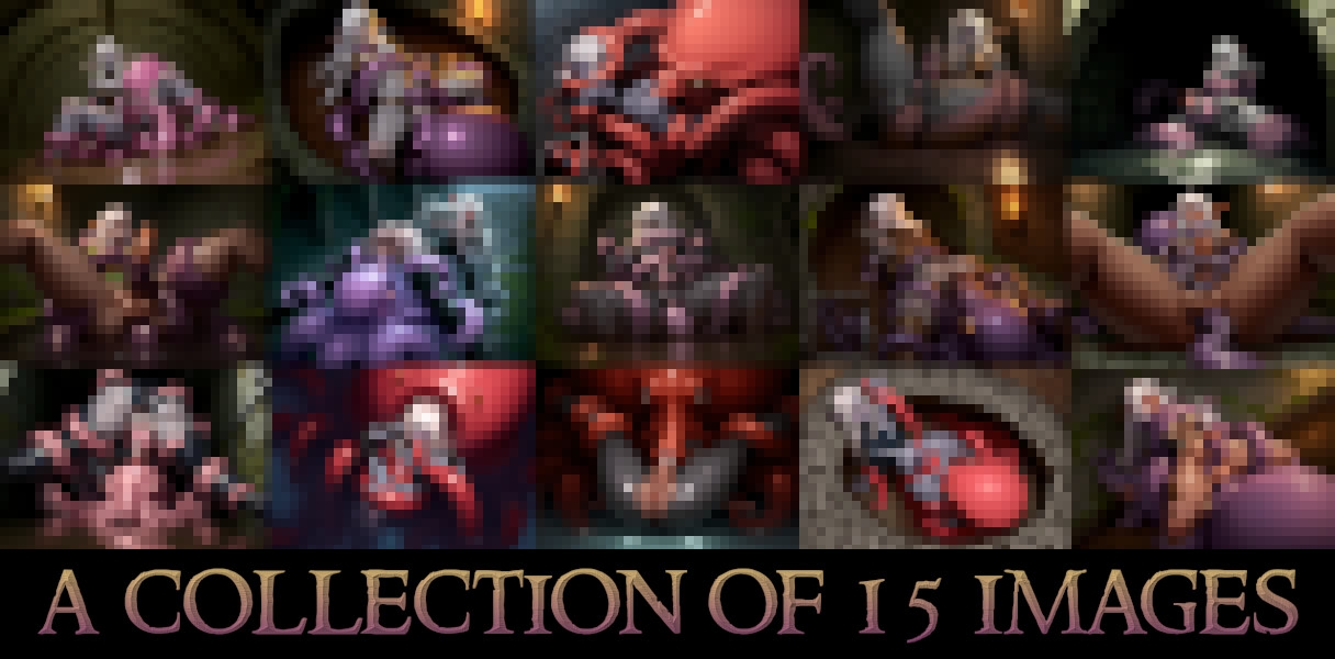 Dark Elves In Dark Sewers is an AI-generated collection of 15 images (+front page) that depicts futanari dark elves in squeezy situations with an emphasis on tentaclejobs.