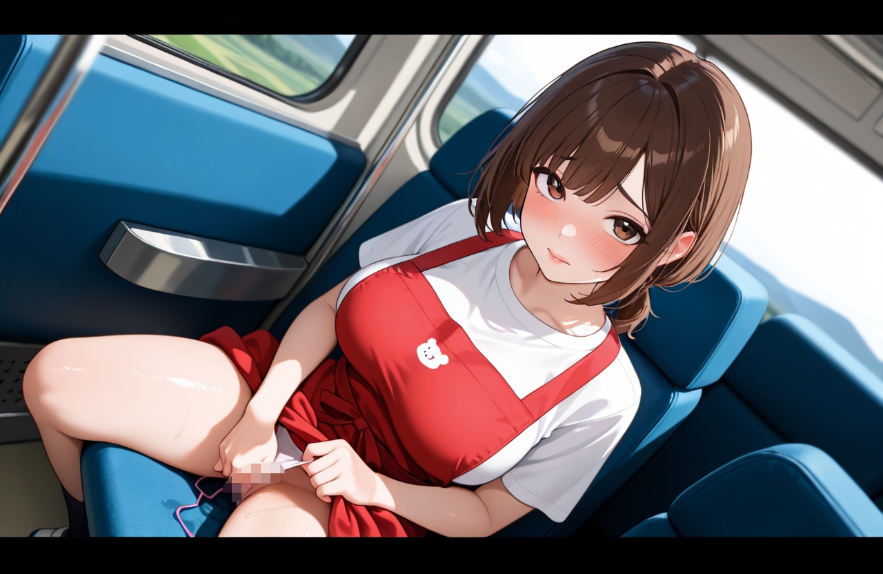 夕闇迫る路線バスの車内。二列シートの向かい合わせの席で、あなたは驚愕の光景を目撃する。そこにいるのは、まだあどけない顔立ちの彼女。清楚な学生服を思わせる装いが、この背徳感をさらに引き立てます。他の乗客に気づかれないように、スカートの中で密かに自慰に耽っているのです。
