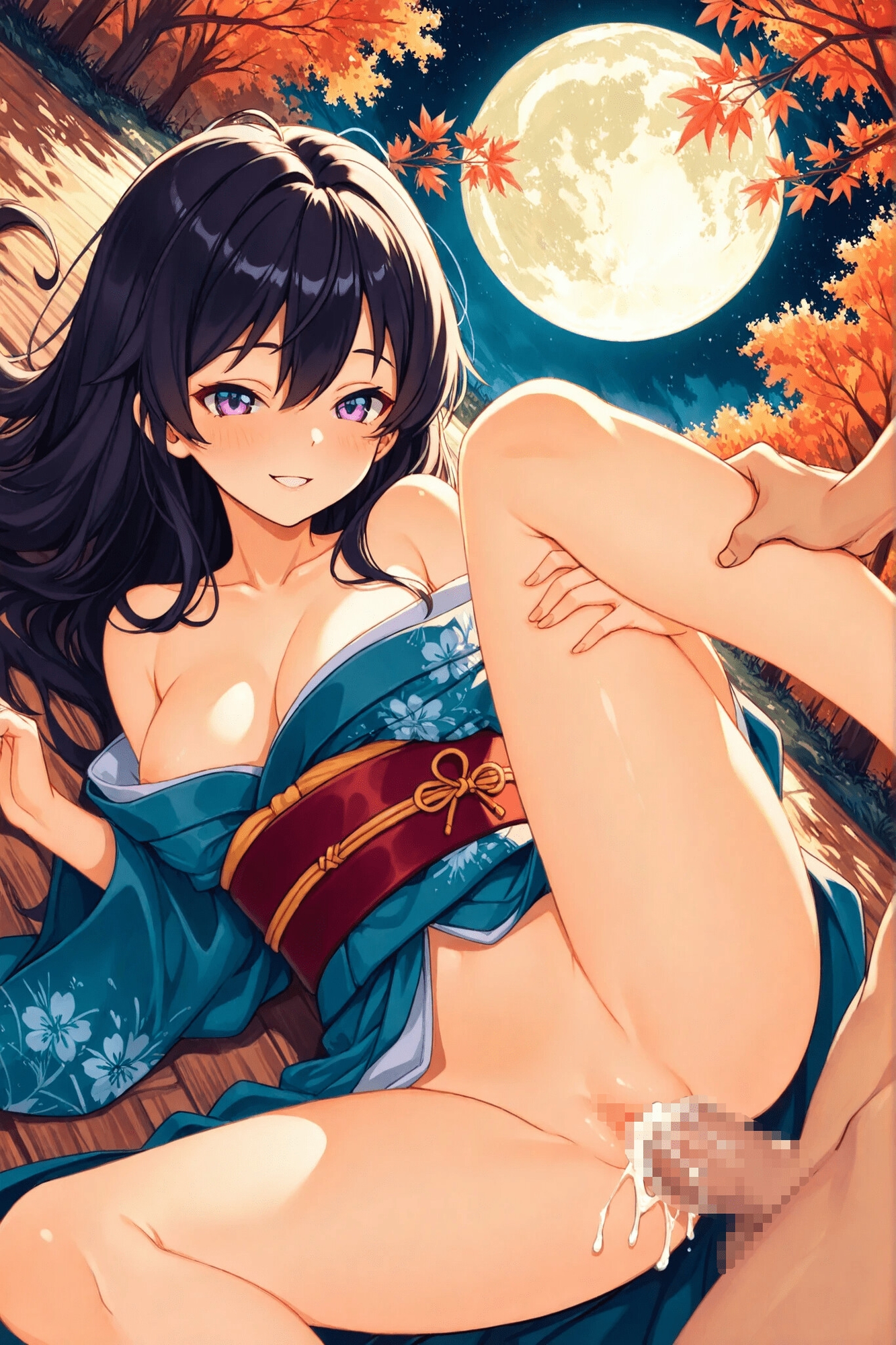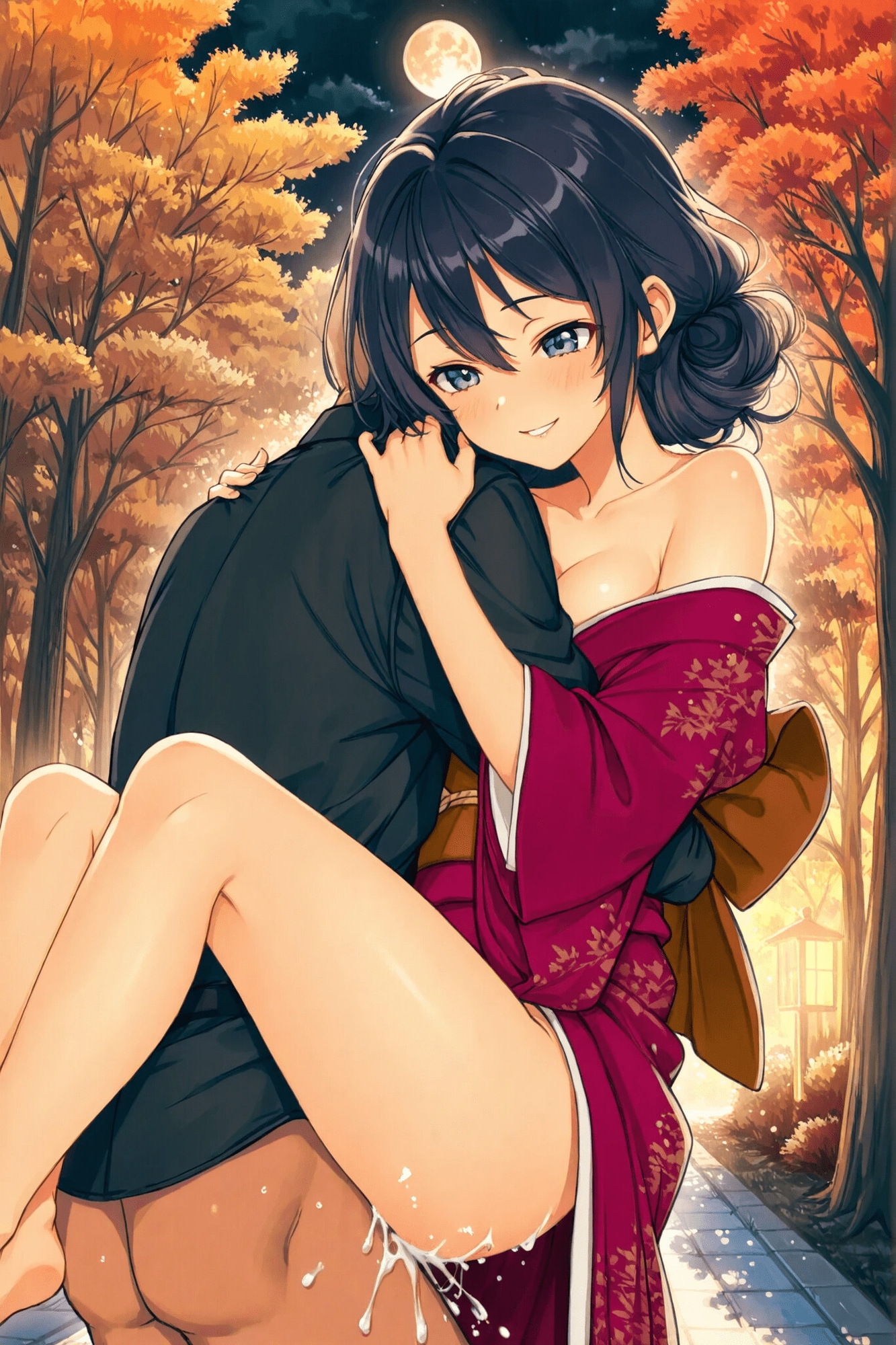 中秋の名月の下で和服女性と着たままえっち! 月に照らされた私を見て…。