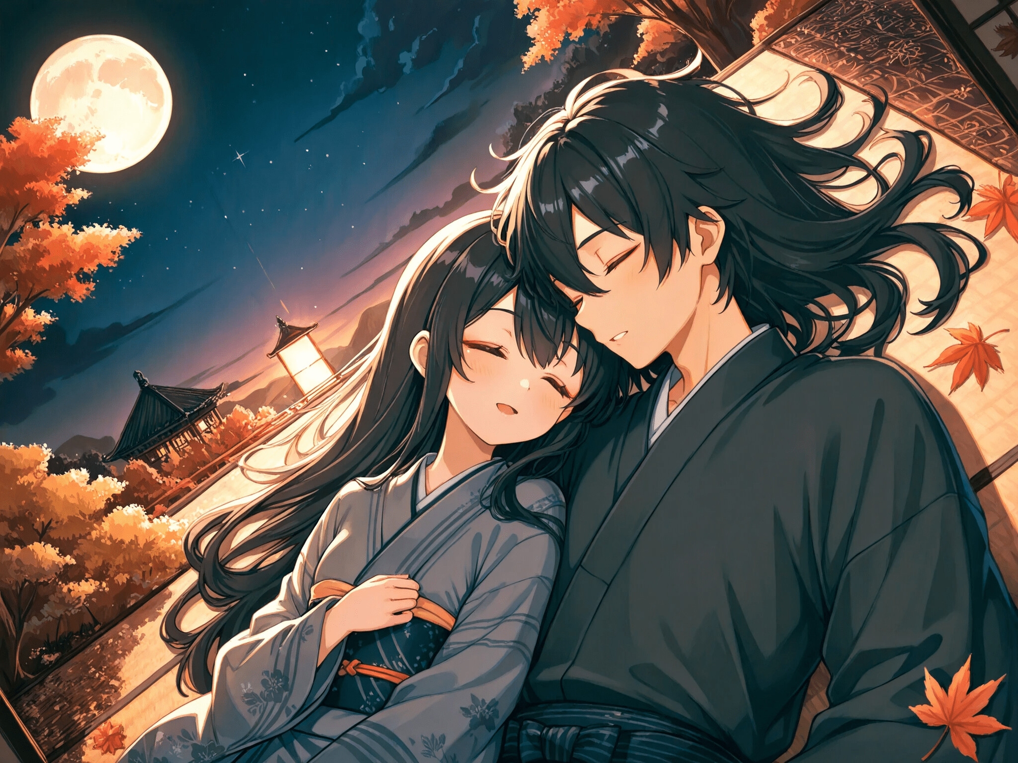 中秋の名月の下で和服女性と着たままえっち! 月に照らされた私を見て…。の画像を紹介