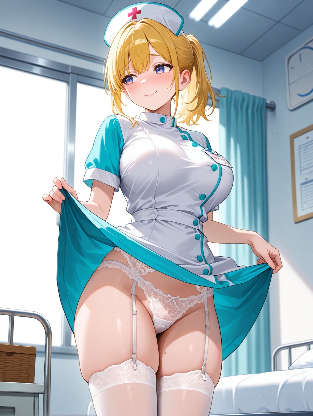 私立クリニックの夜勤に入った新人ナース・星乃リカ(22)。恥ずかしがり屋なのに面倒見が良く、二人きりの病室では距離がどんどん近づいていく。タイトな白衣に赤いボタン、白いガーター——衣装のフェチを丁寧に切り取りながら、優しい声掛けと密着のリズムで甘い時間を演出。頬を染め、視線をそらし、時折いたずらっぽく見上げる表情の変化は必見。肌のハイライトや柔らかな揺れ、指先の触れ方まで質感重視で描きます。ハード表現や暴力的要素はなし。やさしく濃密なナースえっちをお楽しみください。