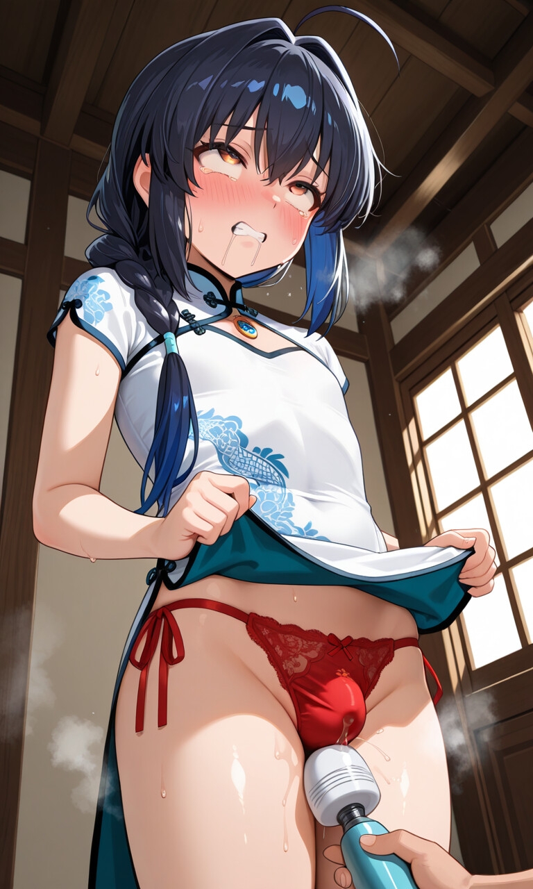 【ヤマトタケル】チャイナ服:ミニスカチャイナでパンチラ羞恥プレイ、電マ責めされパンツの中で射精、拘束ケツ穴ハメ射精されメス堕ち
