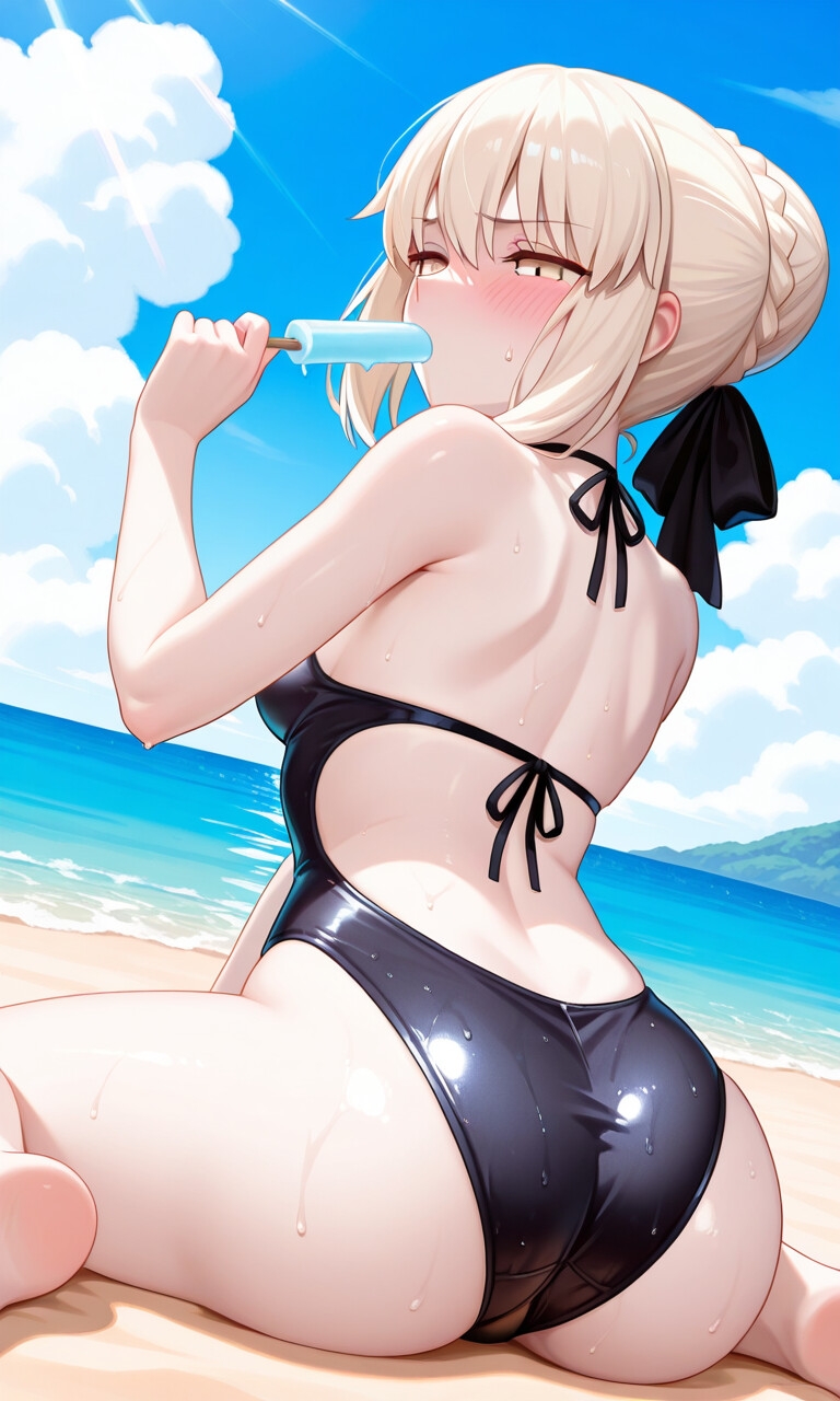 水着:令呪を使われ強●チクニーでアヘイキ、窒息プレイで絶頂潮吹き→お漏らし(失禁)、最後は背面騎乗位でスパンキングセックス→アヘイキ快楽堕ち