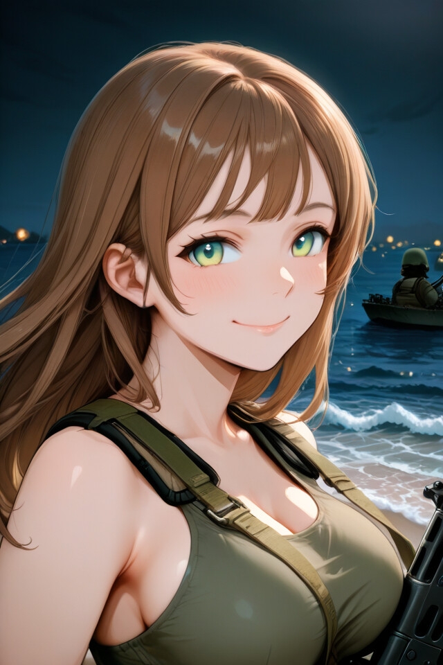 海岸線でみつけた巨乳美女兵士のイラストを集めた