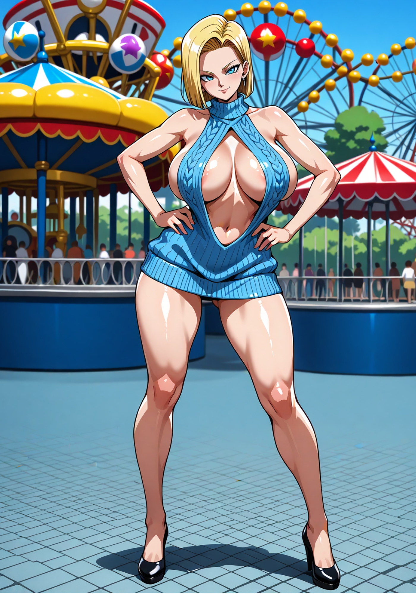 【コンセプト】「18号と中年おじさんの子作りデートに密着」というイメージで作成されたイラスト集です。私服、制服コス、水着、ボディコン、下着、全裸の18号を収録。最後はホテルで種付けされて18号は妊娠。ボテ腹イラストが含まれています。