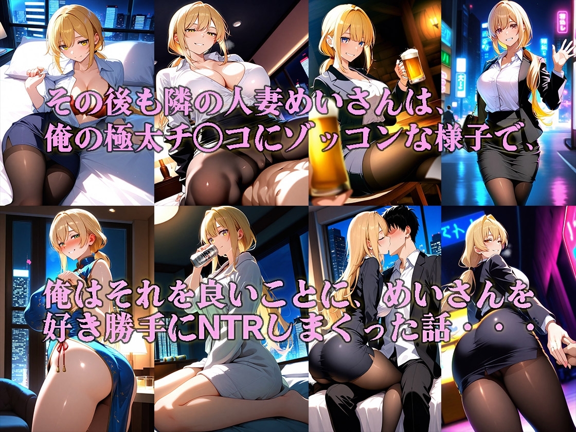 ・人妻、NTR、寝取られ、不倫、隣人、背徳感、金髪、着衣、巨乳、マン毛