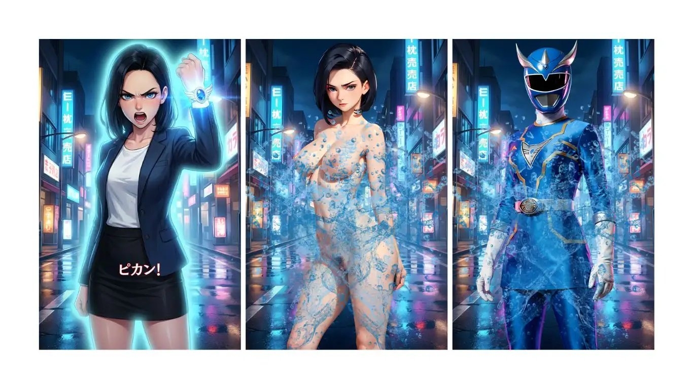 その一方で、街の平和を守る“もう一人の女性”がいる。蒼井渚――正義感あふれる若き警察官として、誰よりも冷静に、誰よりも真っ直ぐに、日々の職務をこなしていた。だがある日――無機質な悪意を宿したカーマの機械兵士が、渚の前に現れる。破壊されていく街、逃げ惑う人々。その光景を前に、彼女はただ見ていることを選ばなかった。運命に導かれるように手にした力。蒼井渚は《ショジョブルー》へと変身し、紅葉と並び立つ“もう一人の戦士”となる。
