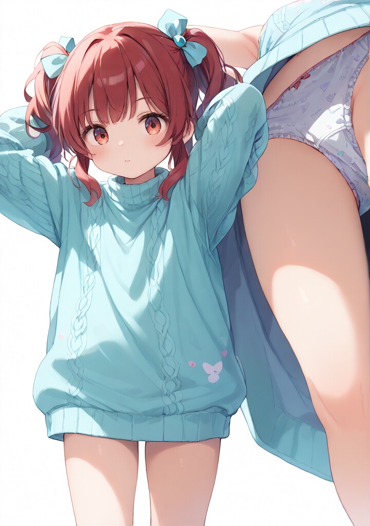 見せるつもりなんてなかったはずなのに――ニットの裾がふわりとめくれて、ついには"あの柄"まで…。