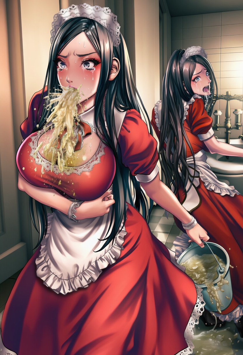作品内容:古い洋館に隔離された可哀そうな赤いメイド服のメイドさんたちが、醜悪な悪性汚染による激しい体調不良に苛まれ、嘔吐・下痢・屈辱の限りを尽くす「嘔吐フェチ(Emetophilia / 吐瀉物フェチ / ゲロフェチ)」 系CG集です!