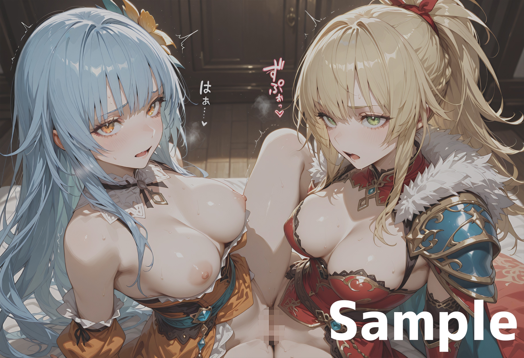 キスやハグなどの百合プレイが多めで、わずかですがふたなり描写もあります。いろいろな衣装やシチュエーションでお楽しみいただけます。
