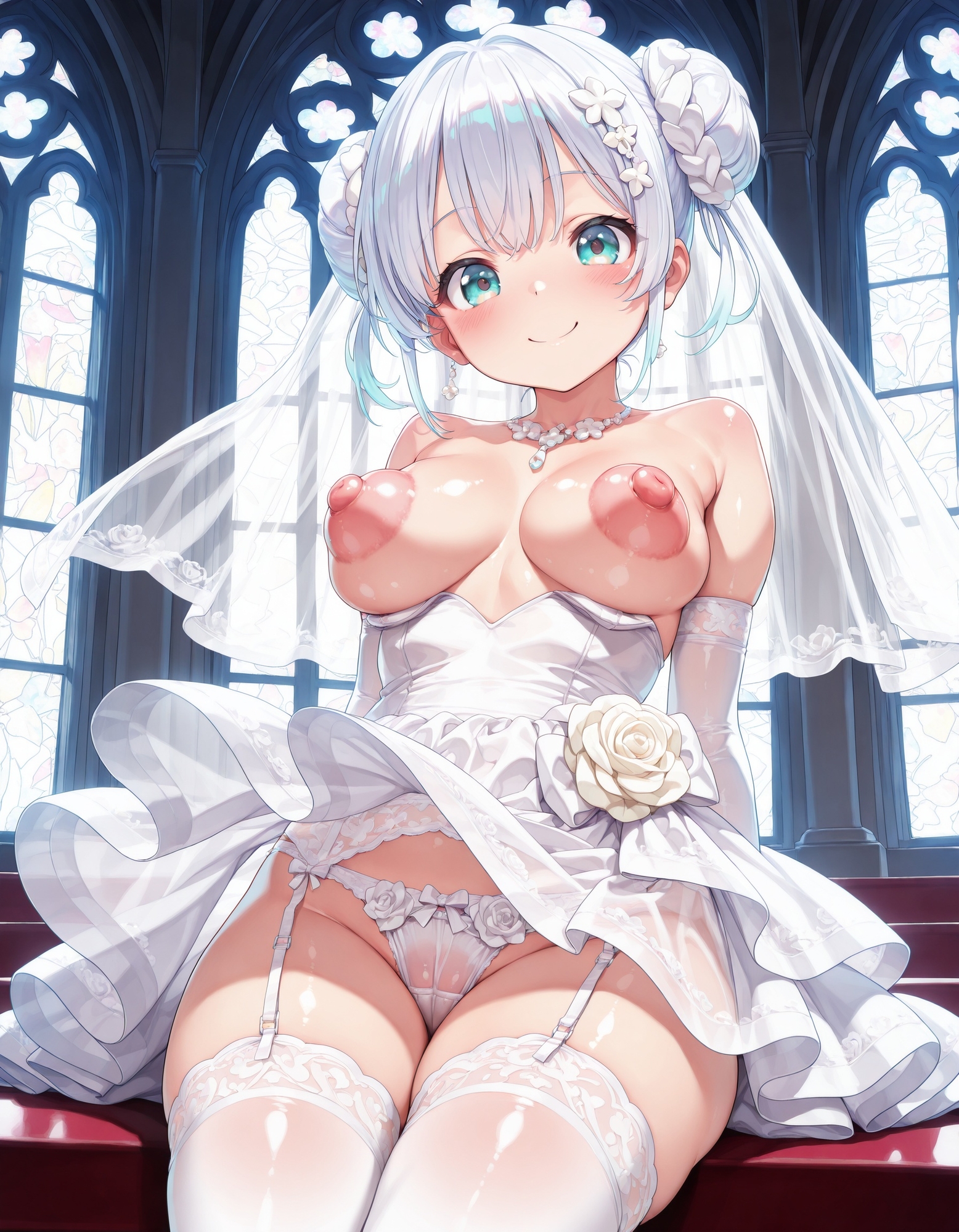 綺麗なウェディングドレスに身を包んで幸せいっぱいの花嫁さんが笑顔をパンツやおっぱいを見せてくれます!