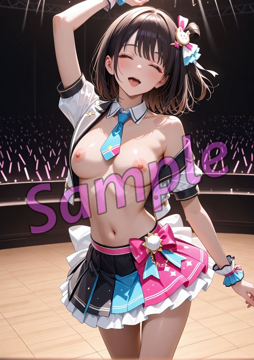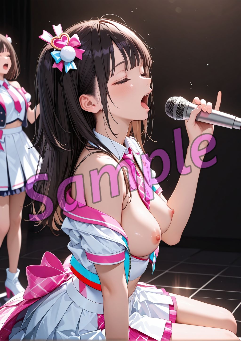 かわいいアイドルがステージで歌って踊ってポーズをとってと躍動しています。