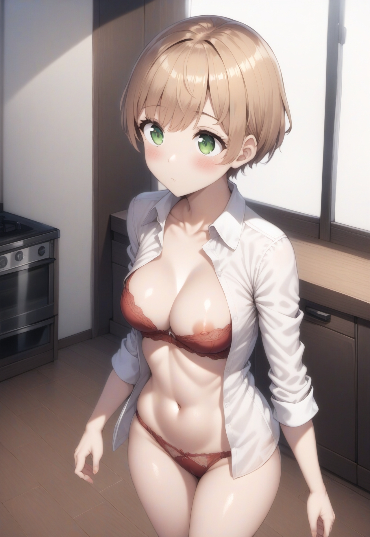制服を着た描写から始まり、脱衣、露出、性行為や自慰など。