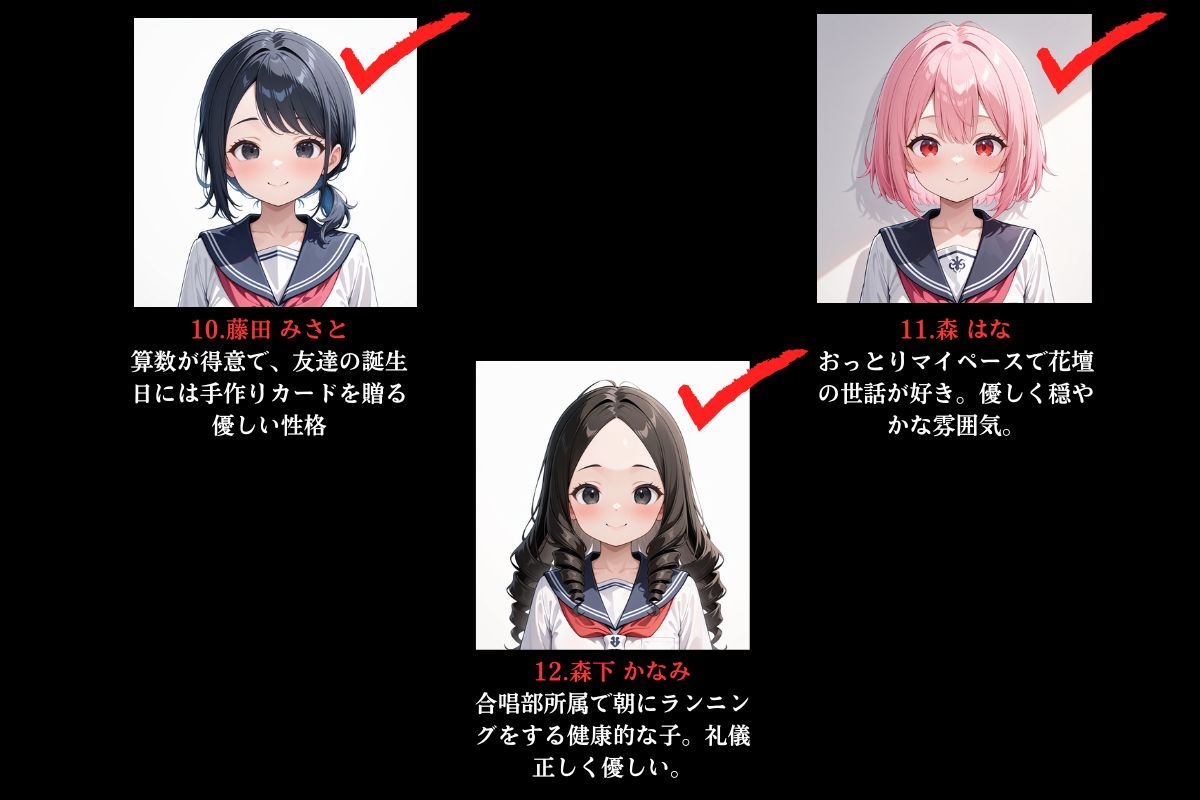 特徴: 合唱部所属で朝にランニングをする健康的な子。礼儀正しく優しい。