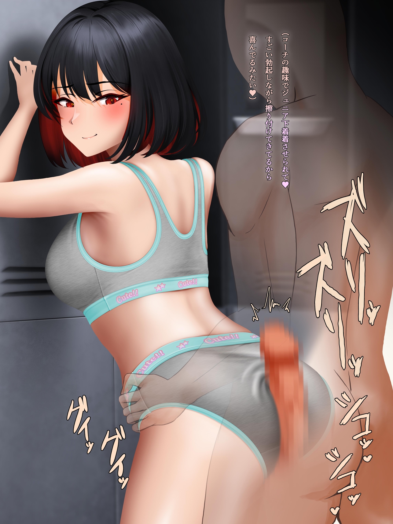 ジ◯ニアショーツ・スポーツブラジャー着用尻コキ 競泳水着