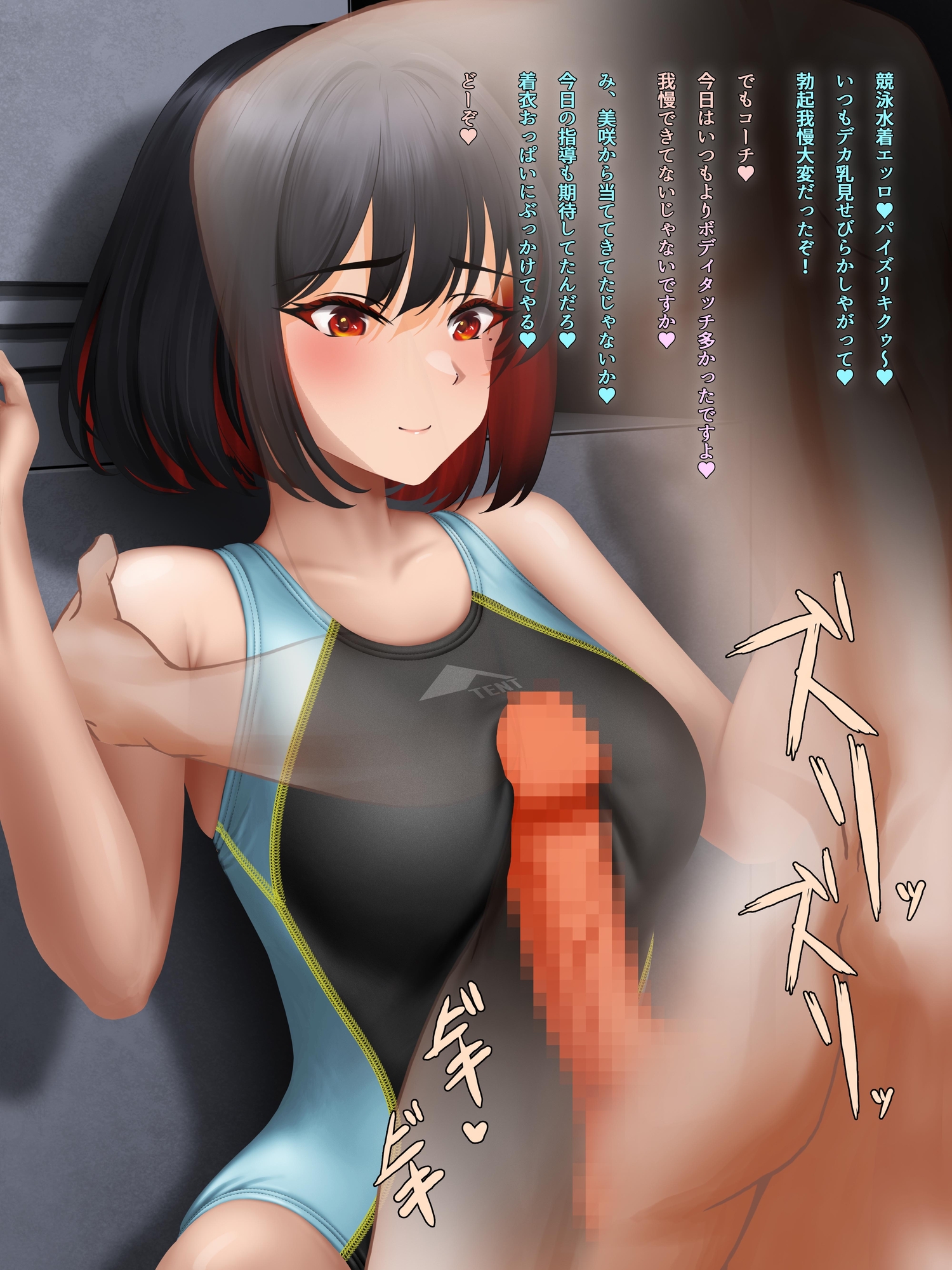 ぶっかけ願掛け!~競泳水着は性交渉で身体に馴染むと噂したら真面目なエースが来ちゃった場合~