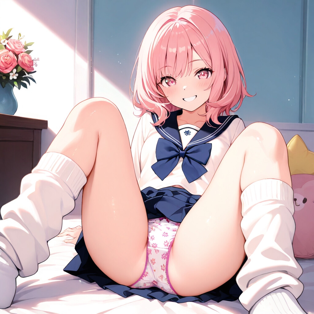 ルーズソックスを履いたJK達が、大胆に足を広げて5種類のぱんつを見せてくれるイラスト集です。