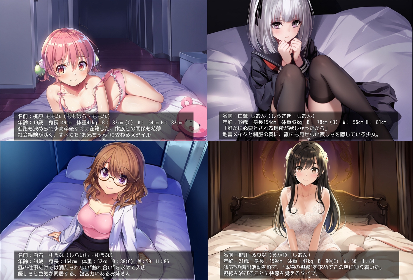 個性豊かなワケ有嬢達は様々な性癖や嗜好があり、プレイヤーを刺激してくる。
