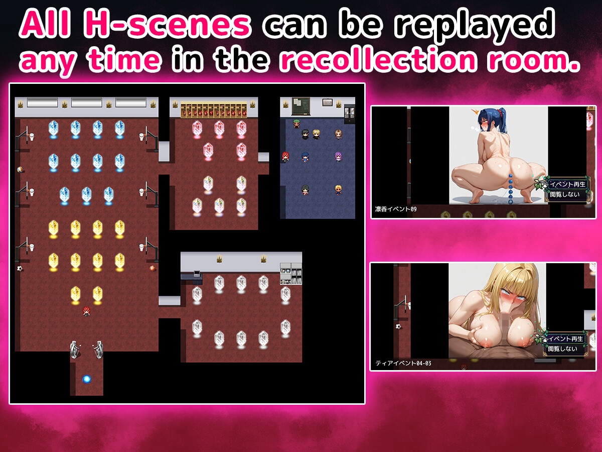 Recollection RoomOnce you’ve unlocked an eventyou can revisit and replay your favorite scenes at any timeas often as you like.All characters are intended to be adults. This immersive RPG weaves a dramatic tapestry of lovedesireand redemption through a wide range of scenariosdelivering a thoroughly engaging experience for adult audiences.This game was created using “RPG Maker MZ.”Please verify compatibility via the trial version before purchasing.(Save data from the trial version cannot be carried over.)