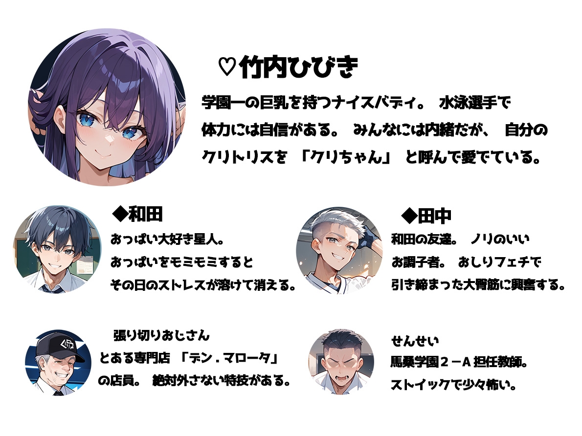 自分のクリトリスを「クリちゃん」と呼んで愛でている。おっぱい好きなひびきのクラスメイト。