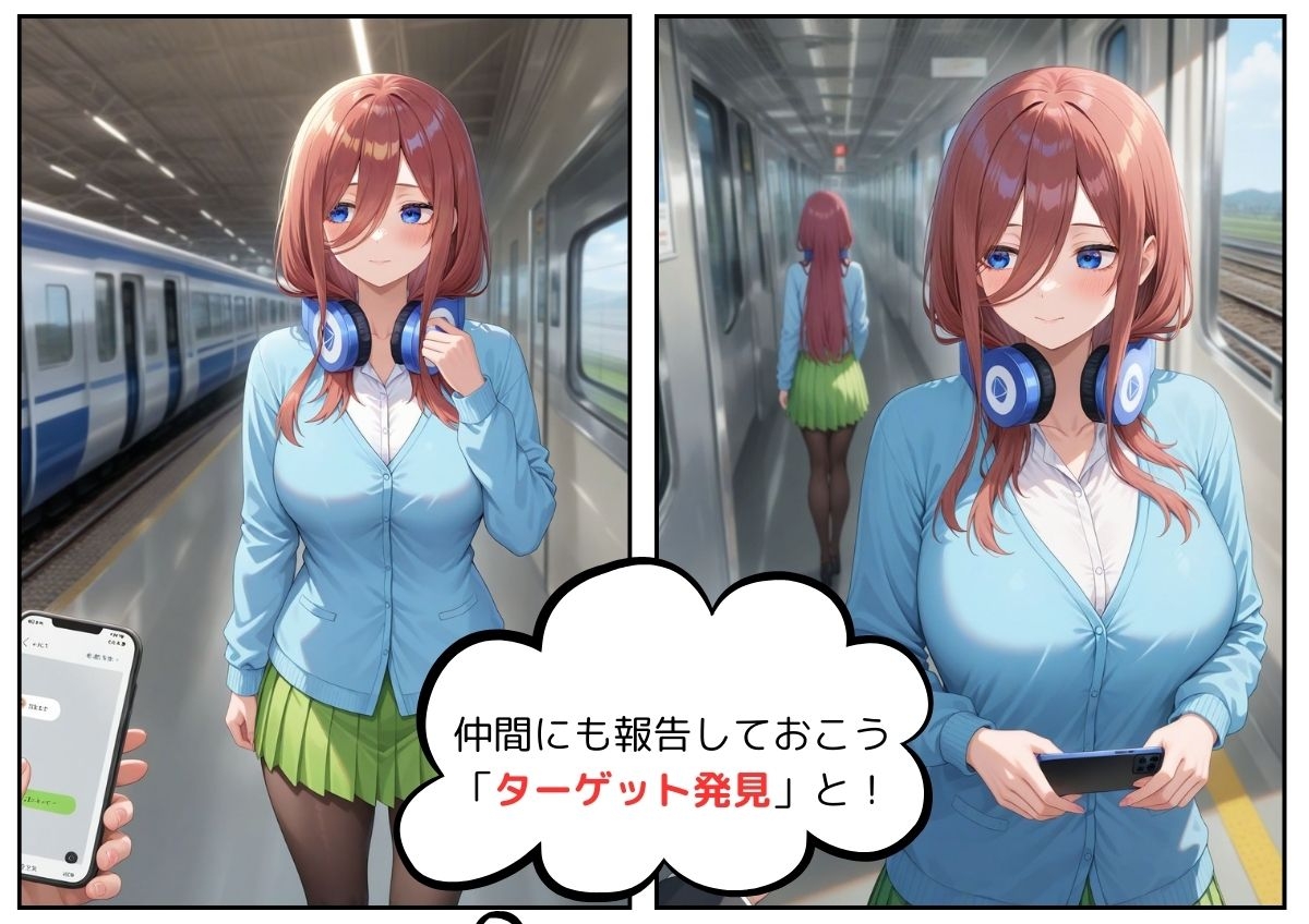 電車内で偶然に見かけた五等分の◯嫁で人気の中◯美玖の魅力に我慢できず、盗撮を始める日々…