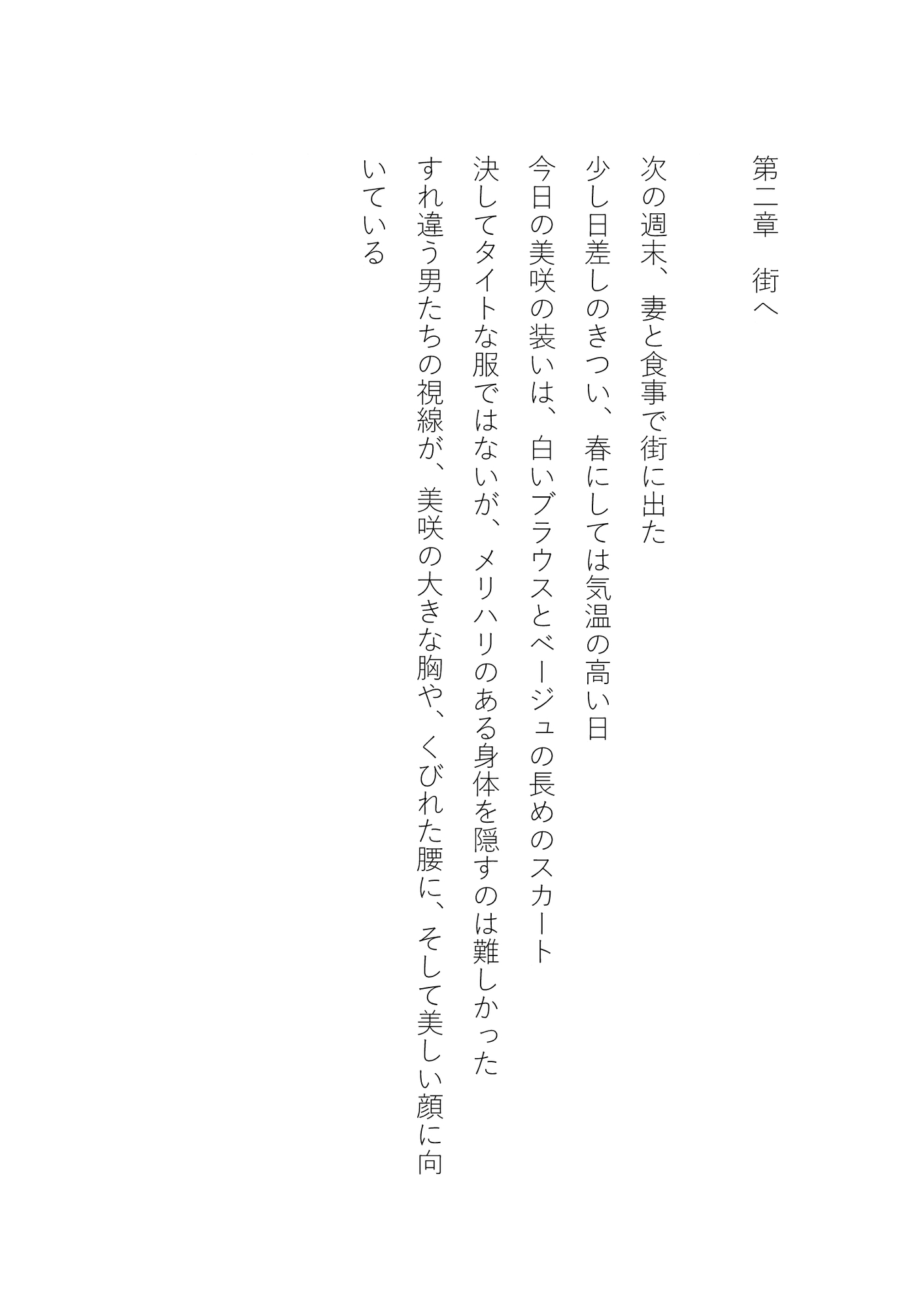 前半は夫、宏樹の主観で、後半は同じ状況を妻である美咲の主観で物語がすすみます。 AIを使用して生成したイメージ画を全60枚、挿絵として使用しています。