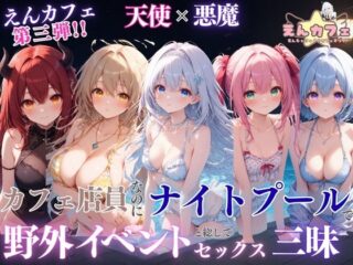 えんカフェ第3弾 カフェ店員なのにナイトプールで野外イベントと総してセックス三昧【フルボイス・中出し・漫画ふきだし】