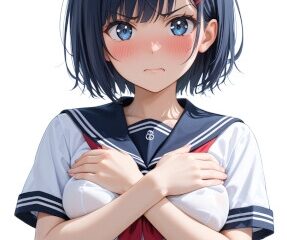 少し怒ったような表情の女の子たちが、恥じらいながら胸を見せてくれる――そんな背徳感をテーマにした、AI生成によるフルカラーCG集です。登場キャラクターは全部で7...