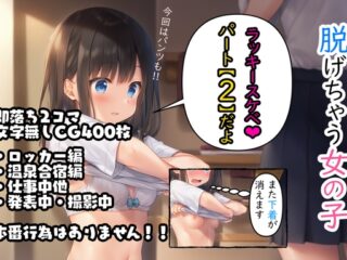 本編はラッキーすけべCG集です。1コマ目と2コマ目のギャップが特徴的な作品となっています。※微エロなので本番行為はありません!!ご注意ください※今回も、脱げちゃ...