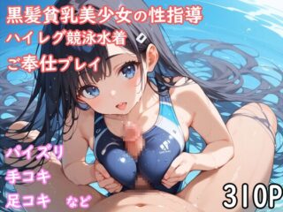 ハイレグ競泳水着の黒髪貧乳美少女に搾り取られちゃいます。髪型や目の色、表情など気に入る子がきっといるはずです。CG:310枚 2304×1792画像内容パイズリ...