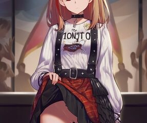 パンク系の女の子が催○にかかってスカートをたくし上げている画像