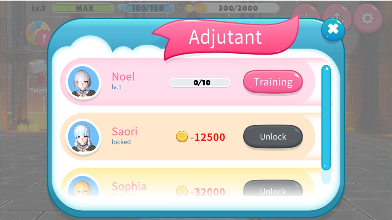 Sophia:Princess of the Frank Empire. Ordered by the king to train due to a shortage of personnel. Skilled with two-handed weapons, she boosts the survivability of tanks and greatsword soldiers. Enhance your lieutenants' abilities and quickly train soldiers and lieutenants Noel, Saori, and Sophia. Hone your strategies and dominate the battlefield! Build rapport with your lieutenants to inspire courage in your soldiers. Deploy tanks, spearmen, and archers to exploit gaps in the enemy’s formation and launch fierce attacks. Experience Noel’s first battle in the demo! (English product description provided by the creator.)