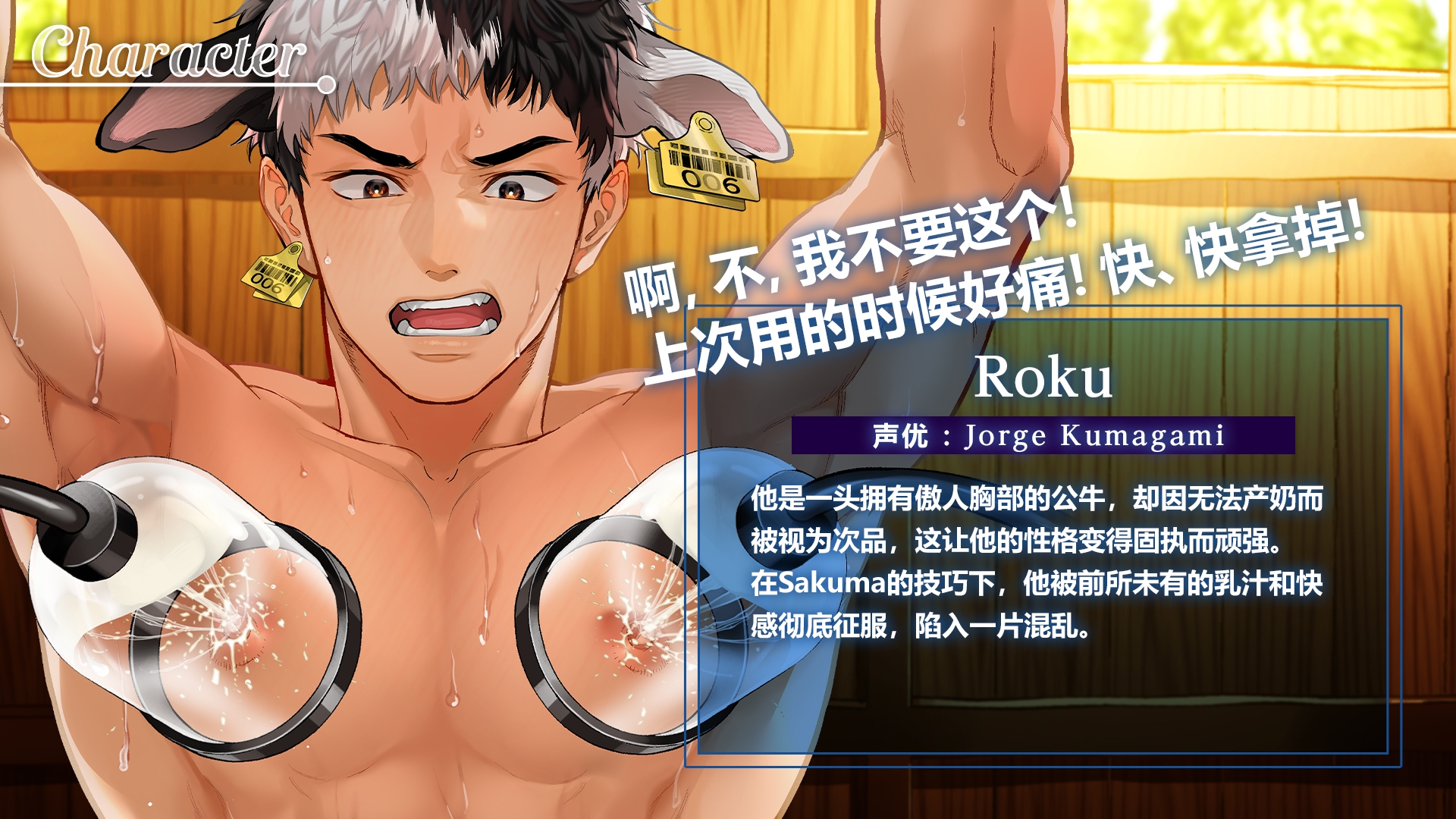 一位能让难产奶的奶牛都产奶的挤奶顾问。Sakuma,这位在产奶难题上成为专家的顾问,与因无法泌乳而变得顽固的公牛 Roku,开始了情色训练,探索各种技巧以开启奶水的流动。这是 Sakuma(看似温柔实则真正的技术专家)与 Roku(英俊、肌肉发达的公牛)之间意志和技术的碰撞,牛奶和精液会四处飞溅吗?! Roku━━━━━━━━他是一头拥有傲人胸部的公牛,却因无法产奶而被视为次品,这让他的性格变得固执而顽强。在Sakuma的技巧下,他被前所未有的乳汁和快感彻底征服,陷入一片混乱。
