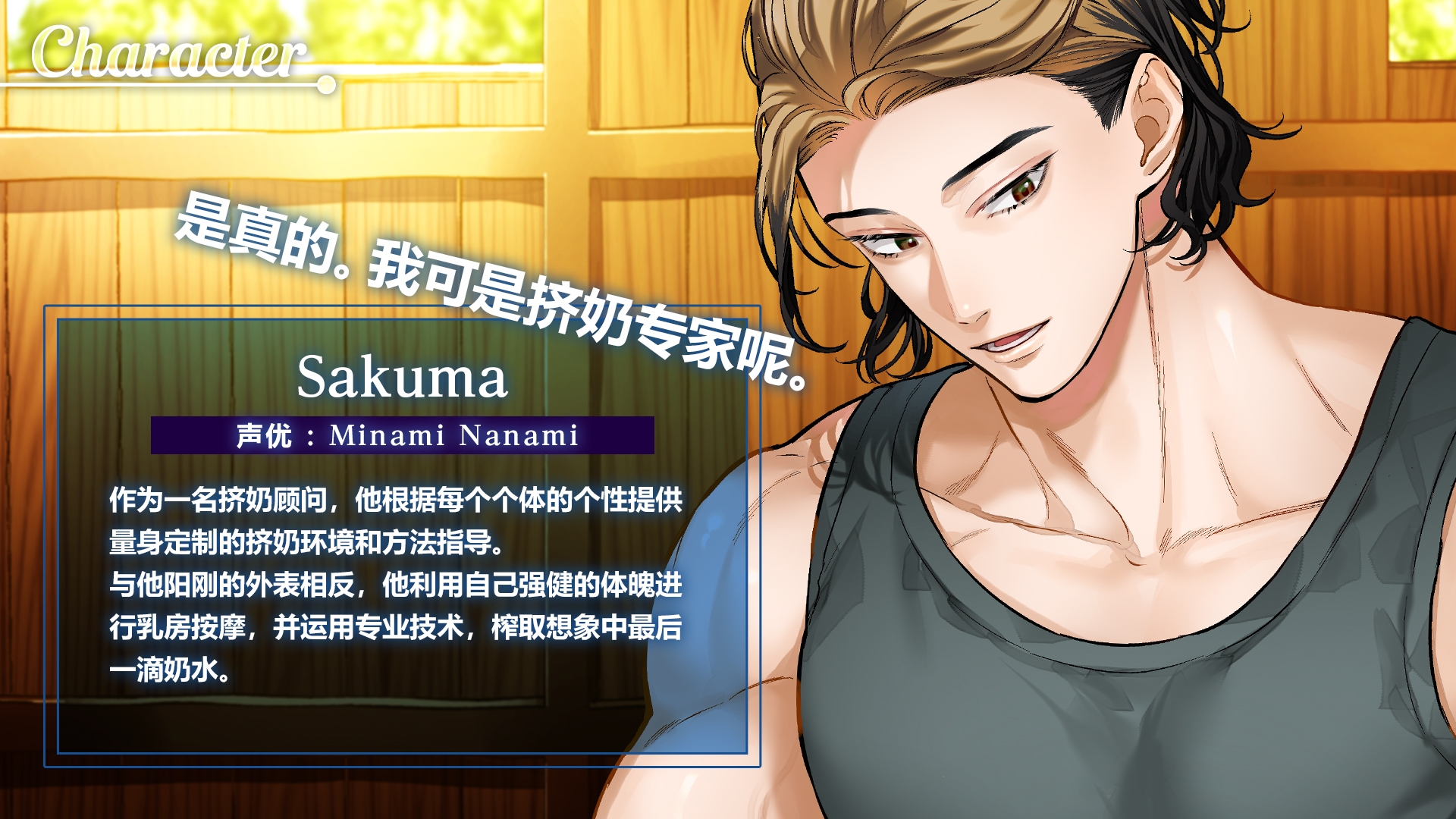 Sakuma━━━━━━━━作为一名挤奶顾问,他根据每个个体的个性提供量身定制的挤奶环境和方法指导。与他阳刚的外表相反,他利用自己强健的体魄进行乳房按摩,并运用专业技术,榨取想象中最后一滴奶水。 【难挤的乳房,乳房,乳房探索,理智,肌肉发达……等等。】