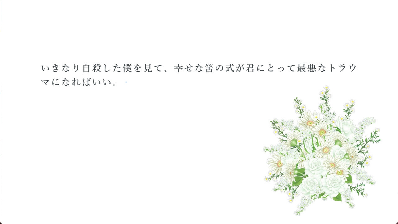 ・読むだけの一本道ノベル、難しいゲーム要素や分岐はありません。