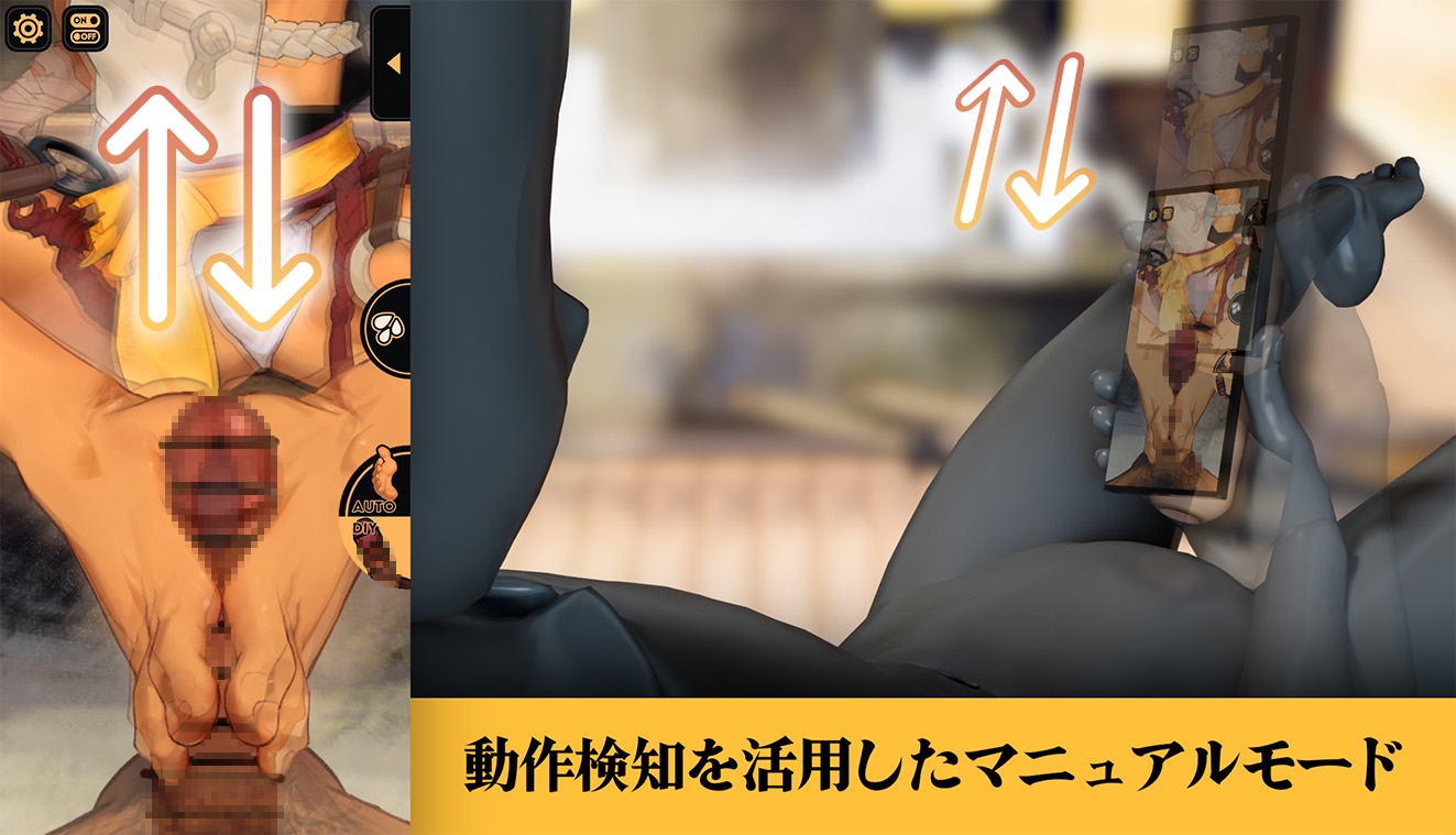 【Exotic Tradition ?】: https://www.dlsite.com/bl/work/=/product_id/RJ01202864.html 【動作検知を活用したマニュアルモード】全3種類。スマートフォンの動作検知機能を使って、腕の動きを感知し、画面上のアニメーションと連動させます。感度やモーションの速度も自由に調整可能!(オナホと一緒に使うと、さらに没入感アップ!) 【オートモード】全5種類。腕が疲れてきたら、あとはオートにお任せ! 【片手操作に対応】右利き/左利きモードに切り替え可能!