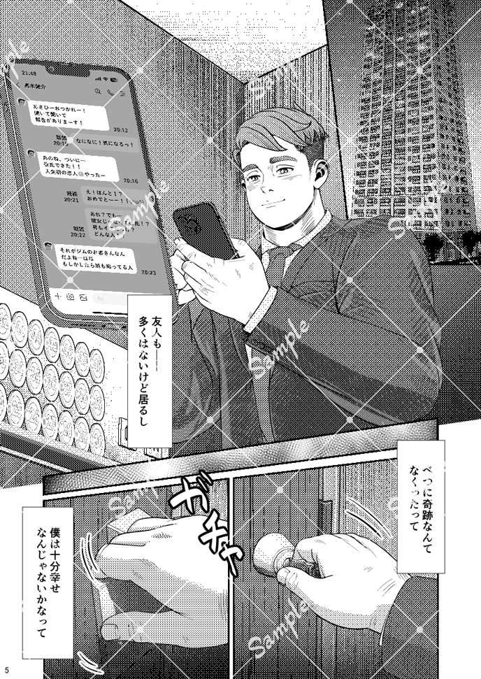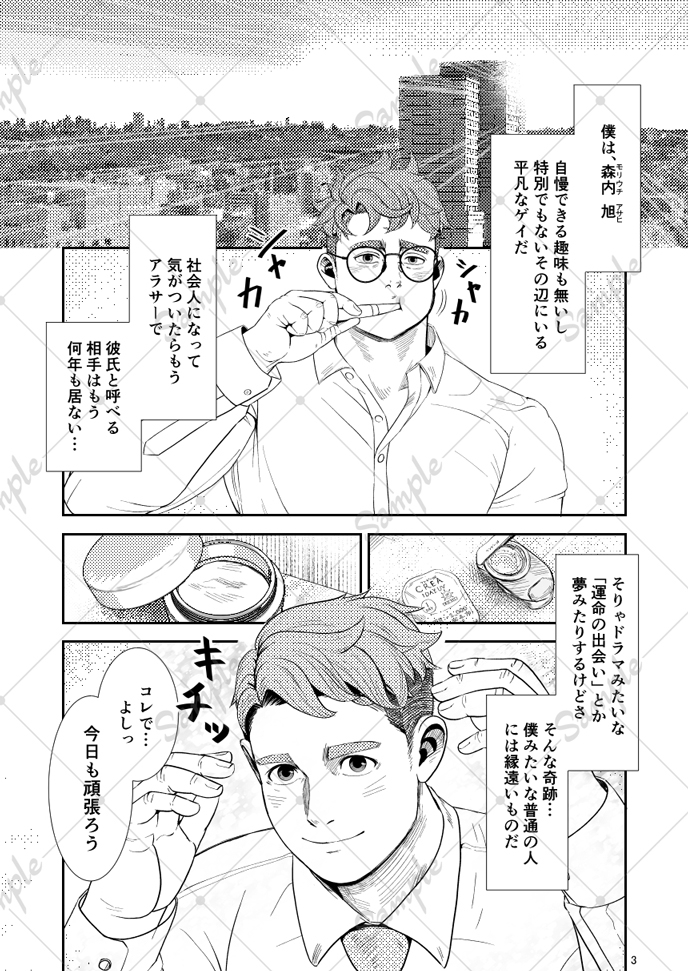 仕事に忙殺され、気づけばアラサー。何年も恋人がいない平凡なゲイ、森内旭(モリウチ アサヒ)は、友人の幸せな報告に心がざわつくのを感じていた。「運命の出会いなんて、自分には縁遠いもの…」。そう思っていた彼の日常は、なくした財布を届けにきてくれたイケメン青年との出会いをきっかけに、大きく動き出す!ドキドキの展開から目が離せない、大人の恋物語。 ※全年齢向け作品_____。ML(BL)作品です。・基本ストーリーは甘々ラブラブです。