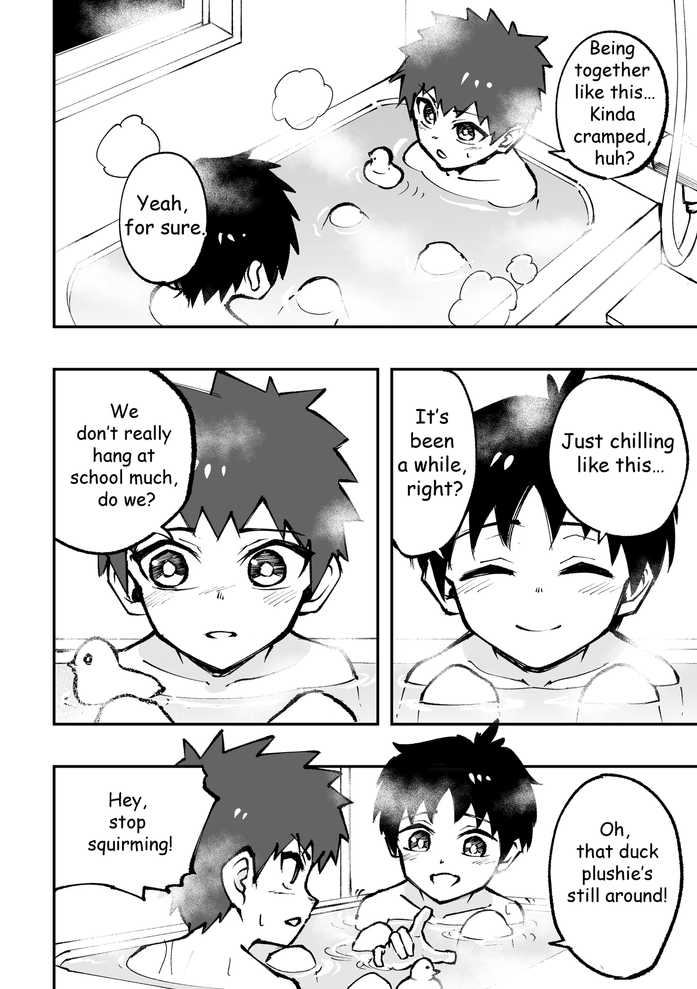 Riku comes to stay over at Yuuta’s house after a long time.They take a bath together, but Riku accidentally touches Yuuta’s penis...!A manga where the two stay naked and get naughty for 90% of the scenes!Includes reprints of Bath, Helmet Clash, Sleepover, Butt Stuff.Total of 58 pages (18p + 40p of main content). (English product description provided by the creator.)