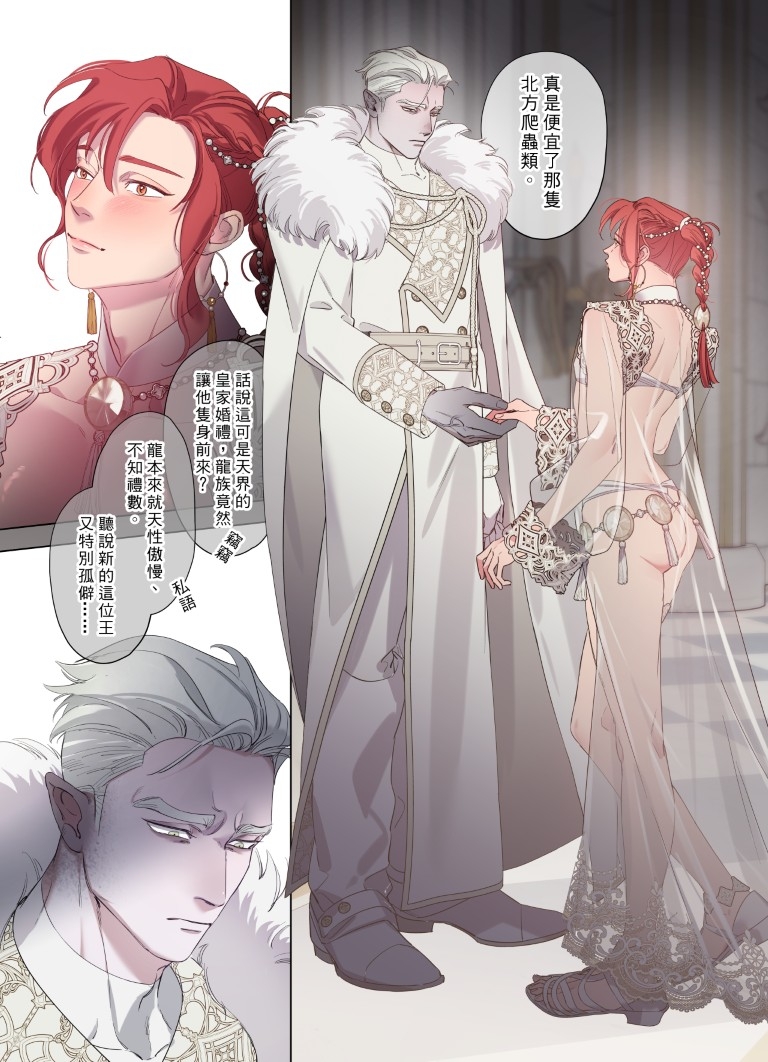 開朗的小王子惠風要在新婚夜用自己的身體征服性格排外又暴躁的龍族老公腓特列,兩人之間的充滿淫靡氣息的初夜就此開始⋯⋯