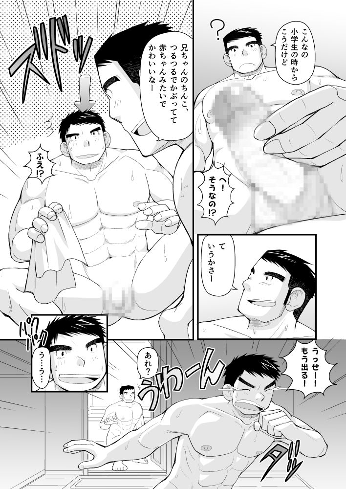 忙しい母親にかわり弟、健二郎の世話を焼く卓也。自分より体格も良くて人気者の健二郎に軽くコンプレックスを抱いていたが、風呂場で一緒になったときに、すっかり剥けきった健二郎のちんこを見て…