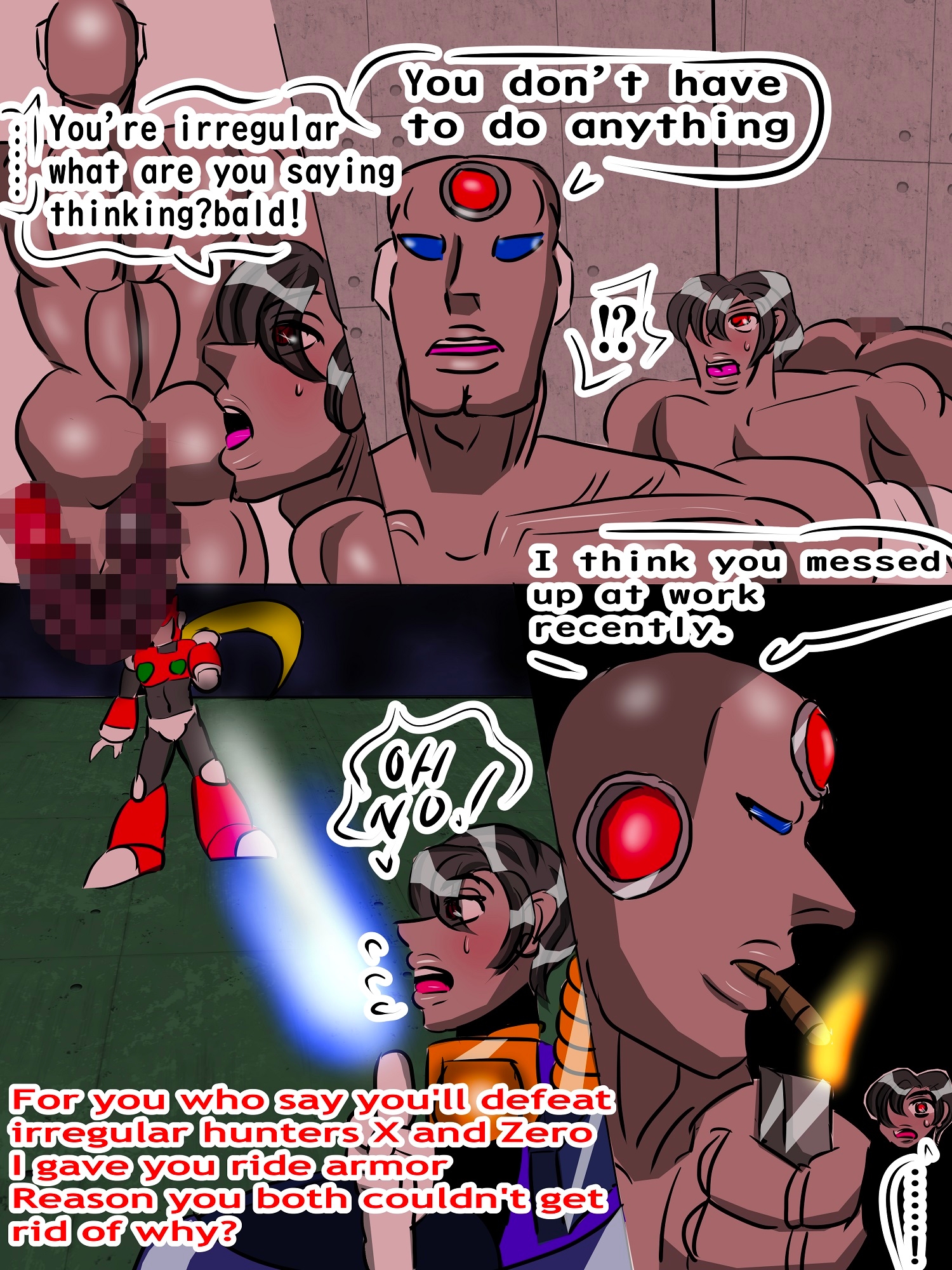A subordinate of the Reploid Rebels, known as Irregular, is demoted to captain, but fights to regain his favor. The Reploid Rebels go wild with sexual desire for their own ideals!