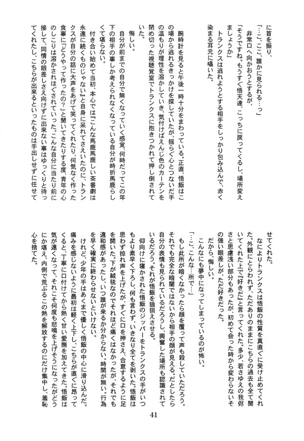 平和な世界に生きるトランクスと悟飯の現代パロディ小説本第二弾!前回で距離を縮めたふたりに新たなるハードルが…それは元カノだったり、家を追い出された父親だったりするからさぁ大変!高宮あきと緑河青による、それぞれのトラ飯をたっぷりご堪能ください!(読み切りなので前回知らなくても大丈夫です♪)