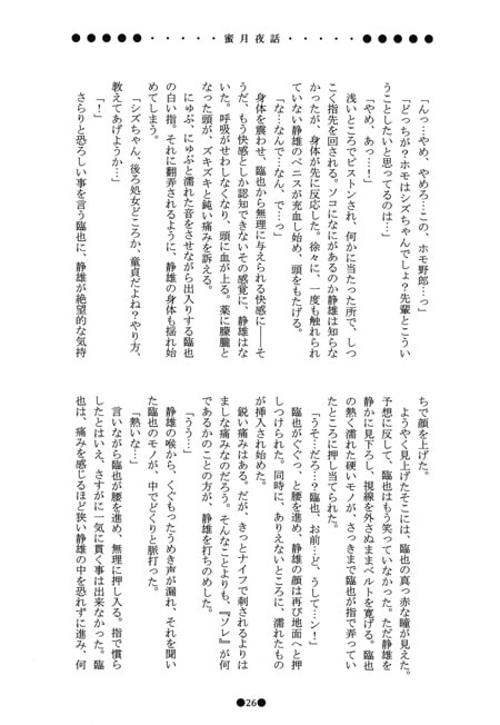トム←静○前提のイザシズ。トムへの信頼感により徐々に牙を抜かれてゆく静○。それを見つめる臨○。ある満月の夜、とうとう臨○は静○を誘拐する。その理由もわからぬまま———一方的な凌辱、トムのじじくさい説教、その中で臨○は自分を知る。