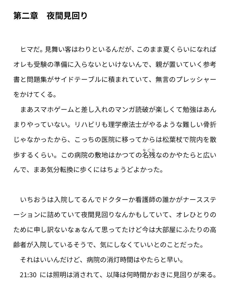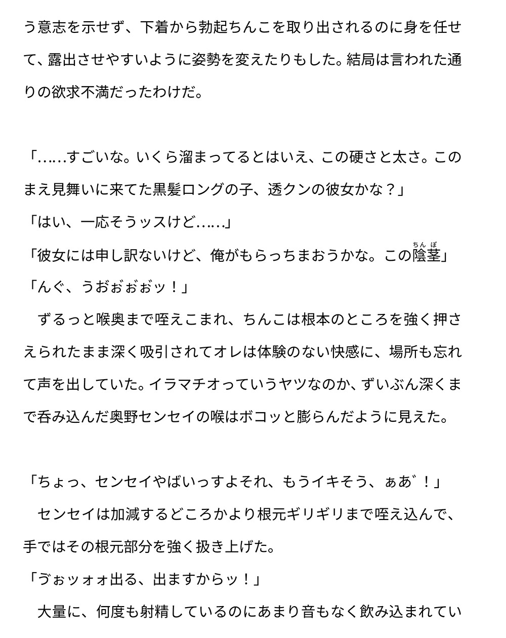 家族や友人の見舞いなども増え、受験生のくせに怠惰で自堕落な入院生活を送る透だったが、院長である奥野には不自然なほど可愛がられていて、やがて夜の見回りのときにある異変が起きる。