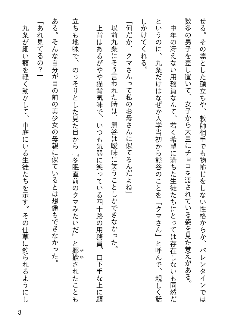 熊谷満夫は、元番と別れてから孤独な人生を送るオメガだった。日々をただ静かに過ごすことだけを望んでいた熊谷の前に、ある日、アルファの成海亮が現れる。ベータのおじさんだと勘違いされたまま、成海との距離は次第に縮まっていくが、ヒートが訪れた時に熊谷がオメガだと気付かれてしまい――