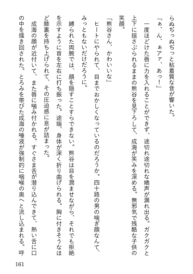 しかし、義兄は決して精神までは落とされません。2時間なんてあっという間に過ぎるくらい、雑談屋の世界に引き込んでくれます。BLノベルではあるのですが、3人の関係性を楽しむ作品でした。拘束はほぼなし、おもちゃは程々、フェス会場のいたるところでいたしてます。