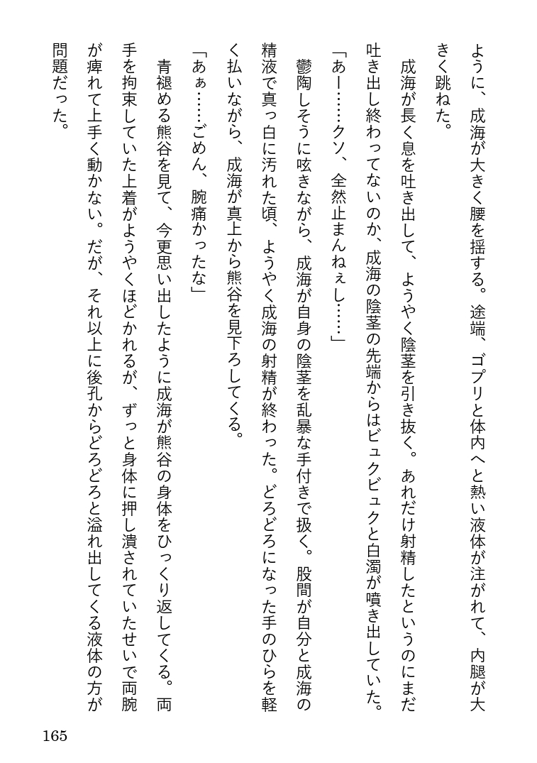 初めて聞いたとき、雪崩のお話ってどっかの伏線?と思いました。ブサイクなおっさん攻めxメガネの真面目イクメンパパのお話です。行為の最中ぶるんぶるんゆれる雄っぱいを自然と目で追っていました(笑)久しぶりの逢瀬でムラムラを我慢できず野外&ラブホで激しくエッチしまくるお話です。